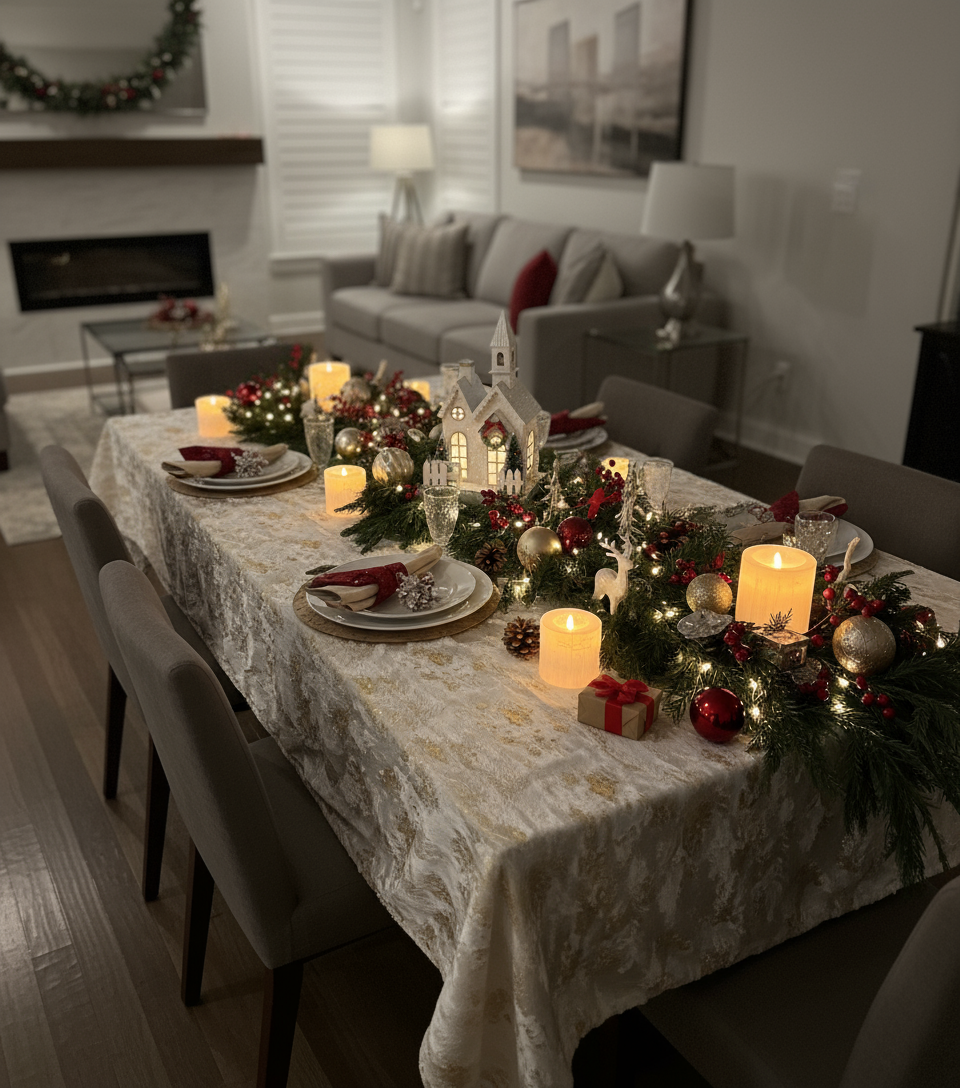 DESIGN ELEMENTS: Crafted from paper cardstock with white glitter finish, gold accents, ornate windows, and decorative trim details. Yes, you will have the magic of Christmas glitter on your tabletop and hands when setting up but this is accounted for in the manufacturing process and your lighted holiday village house will sparkle in your home.