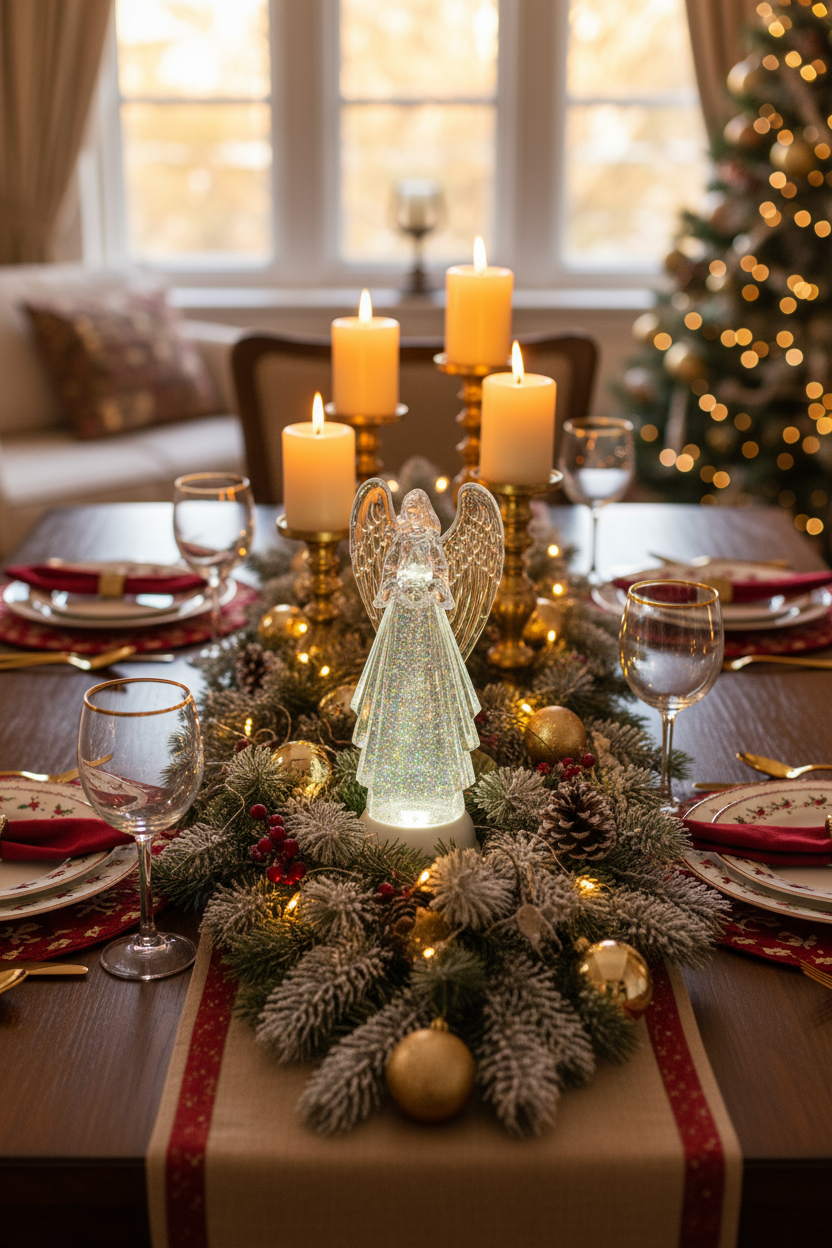 ELEGANT DESIGN: 13-inch high clear acrylic angel figure with beautifully detailed wings and flowing robes, creating a stunning holiday centerpiece